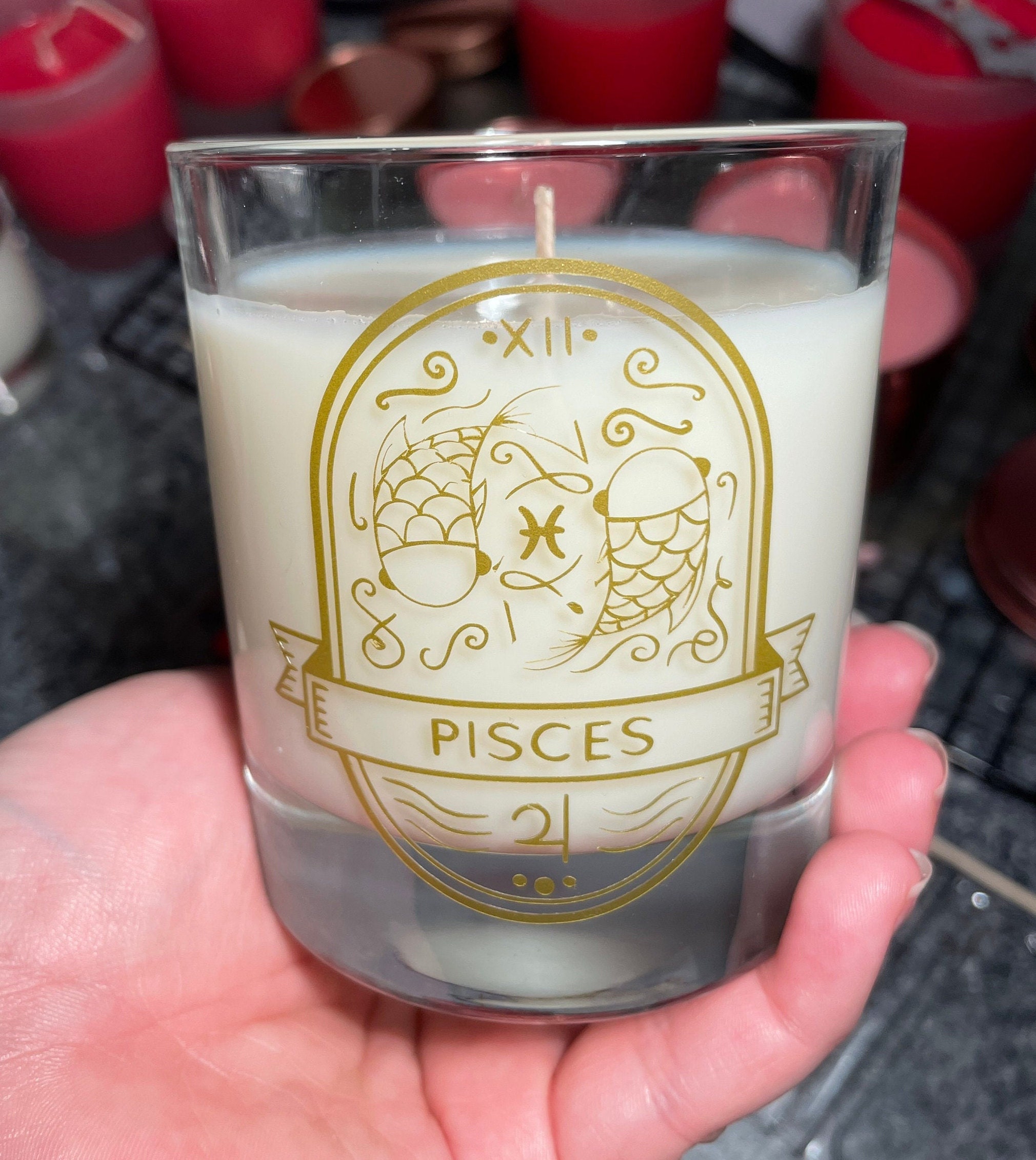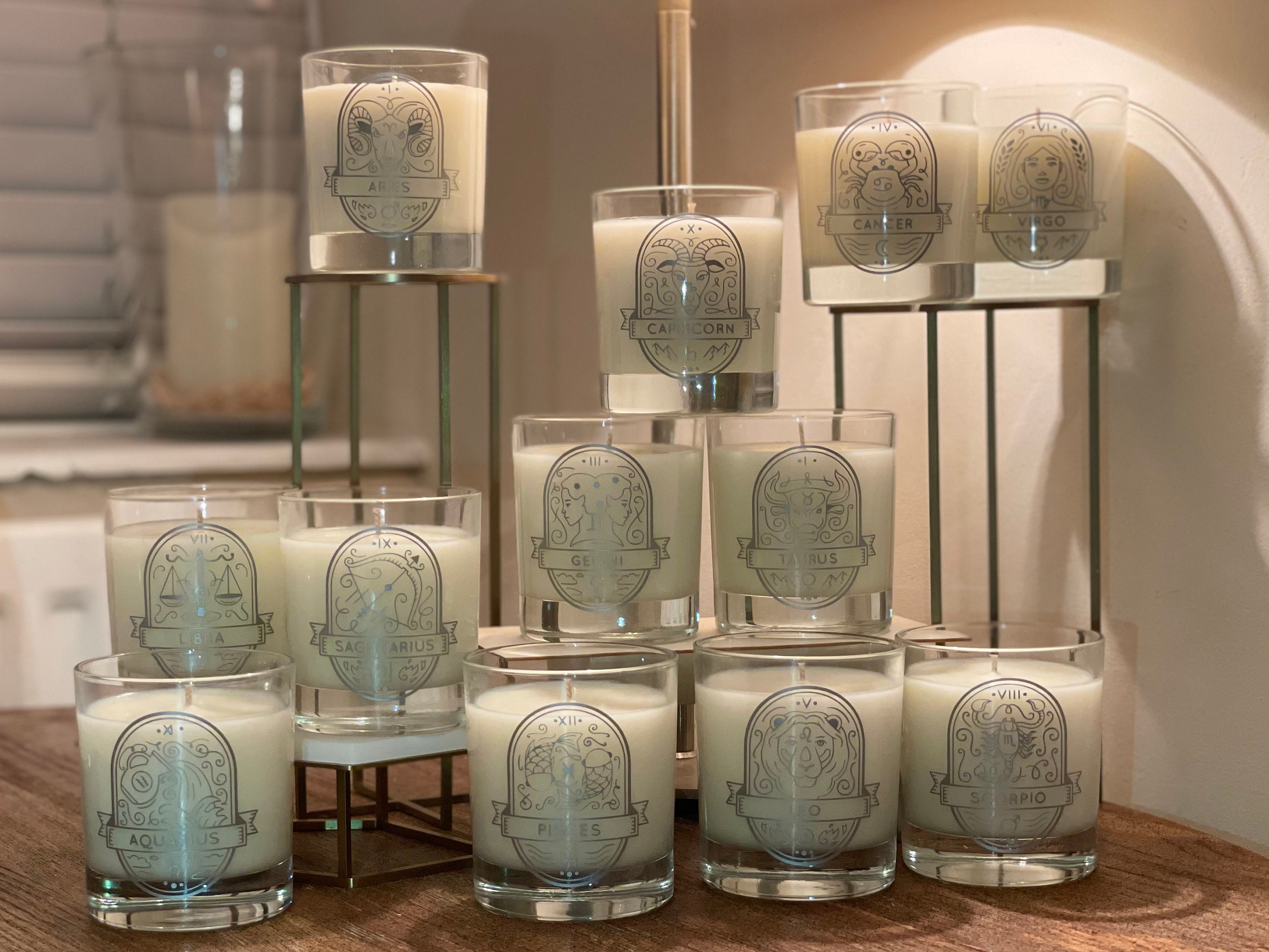 Options available to have the astrology sign in gold or silver. They are 30cl and have a burn time of approximately 30-35 hours.