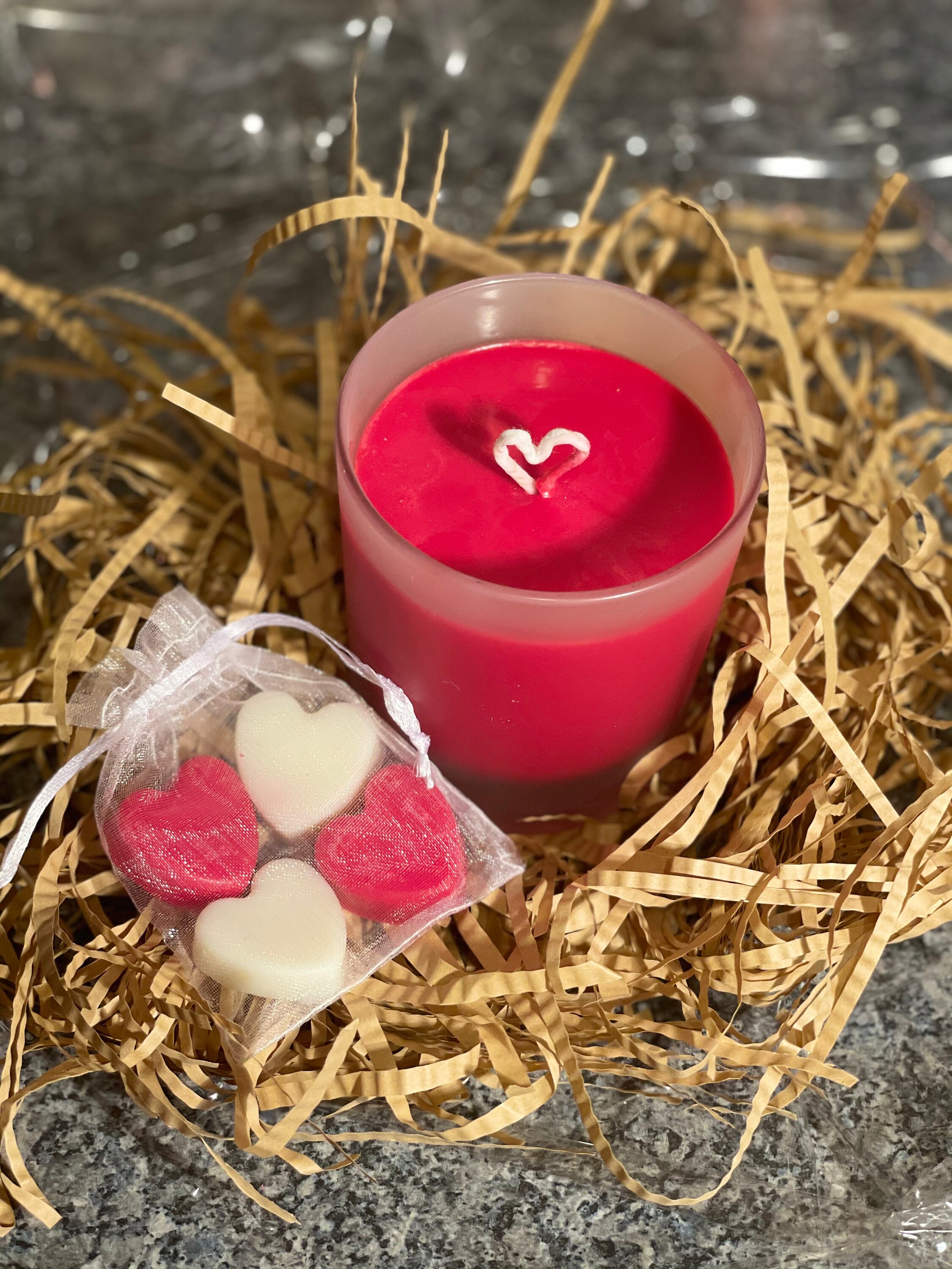 We have a variation of different size red gift sets. All candles and wax melts in these gifts sets are made from eco friendly and vegan soy wax and are all handmade with a beautiful elegant and sweet scent to them. The large 30cl candles have a burn time of approximately 30-35 hours.