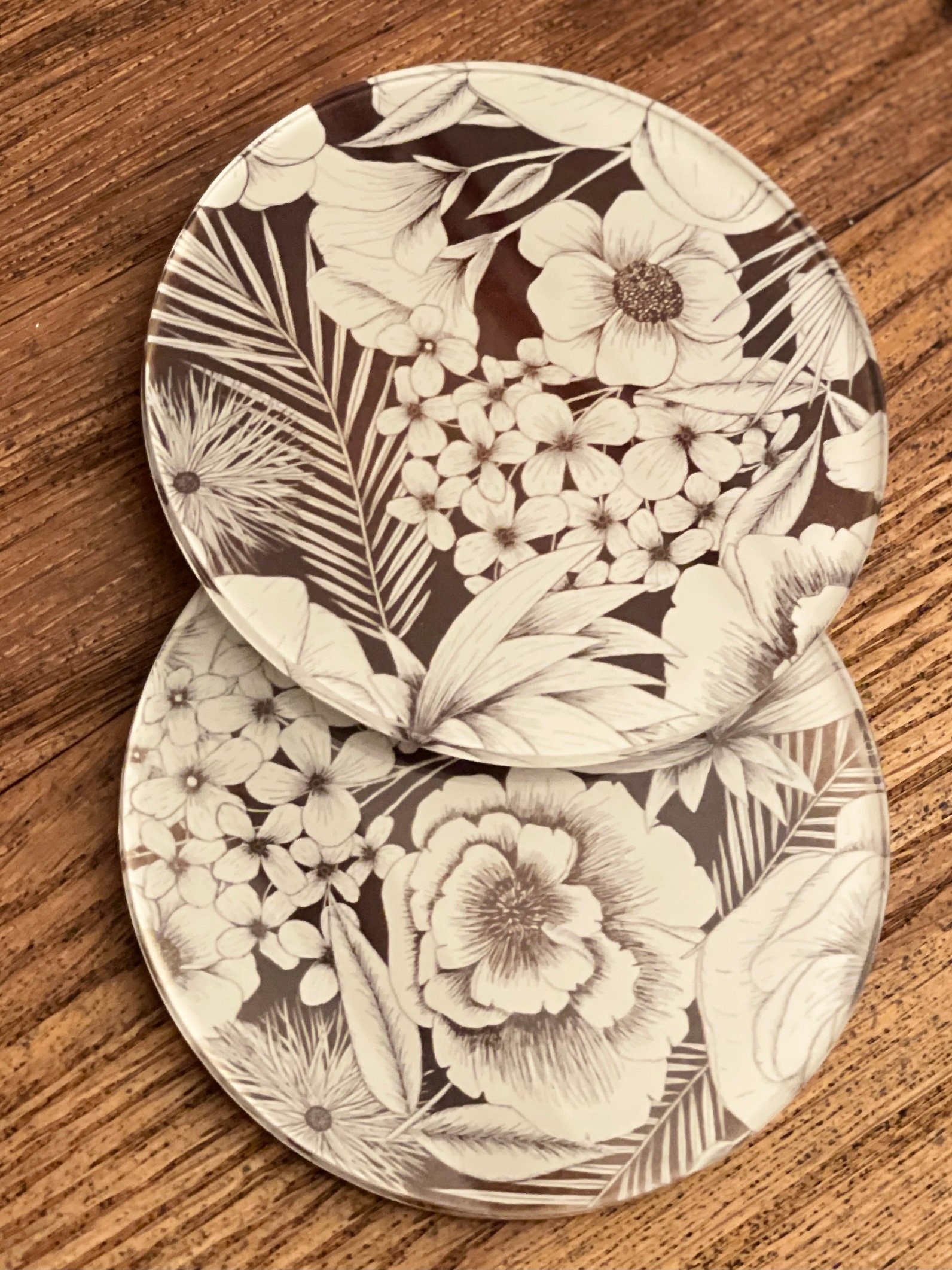 Compliment your candles or use under drink ware with these beautiful glass coasters.
